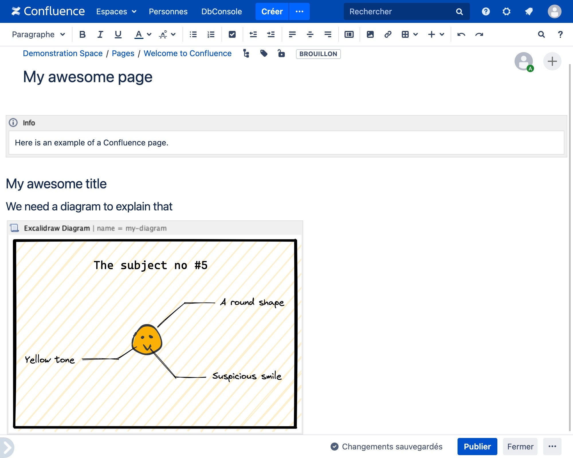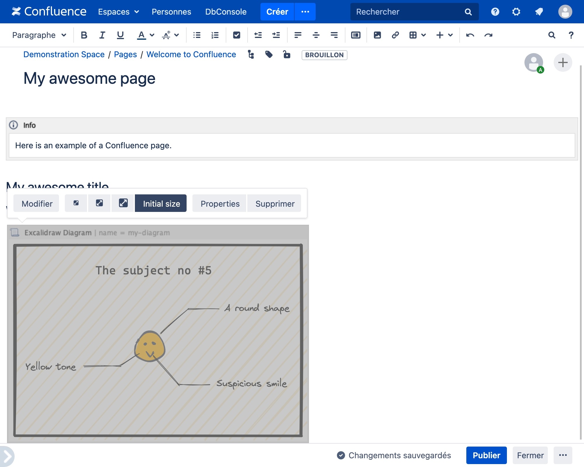 You will find some screenshots here, they have been taken using the version 1.0.0 of Excalidraw for Confluence.
